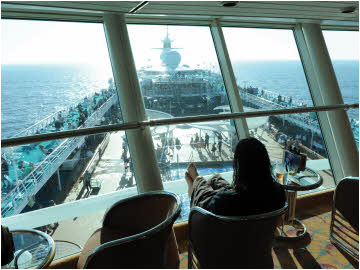A large choice of food in several restaurants, ranging from formal à la carte dining rooms, endless buffets, 24h pizza, a sushi-bar, grills, and even 24h room service in your private cabin!